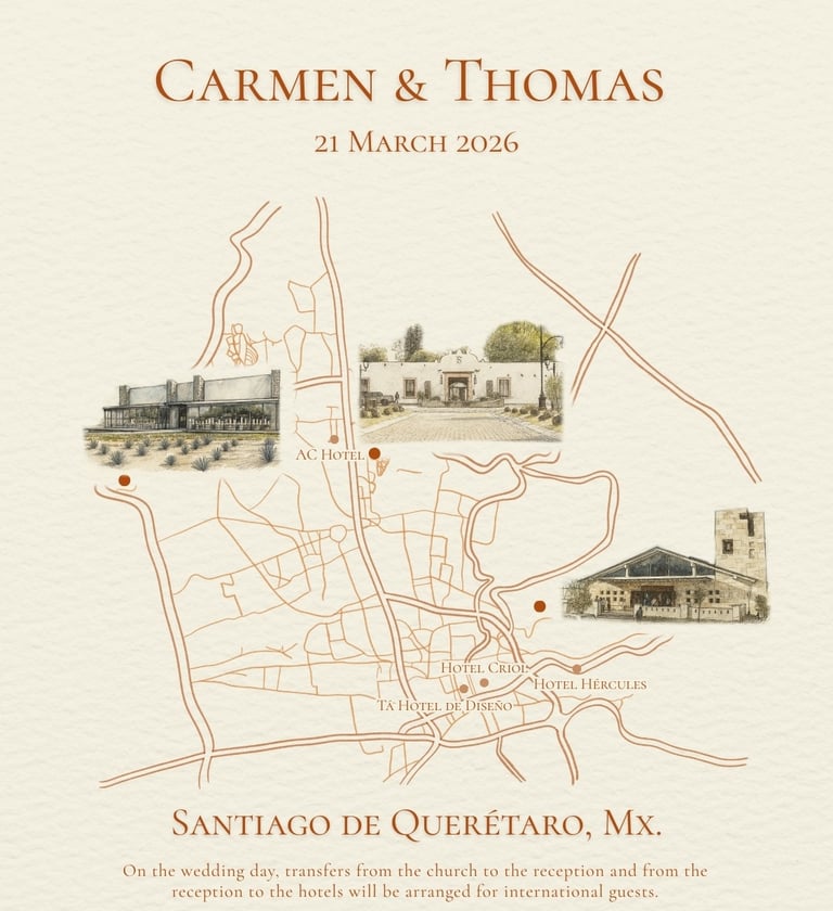 We share with you our Event Map, you can see the locations of the Pre-Wedding, Wedding and Hotel venues that we suggest.